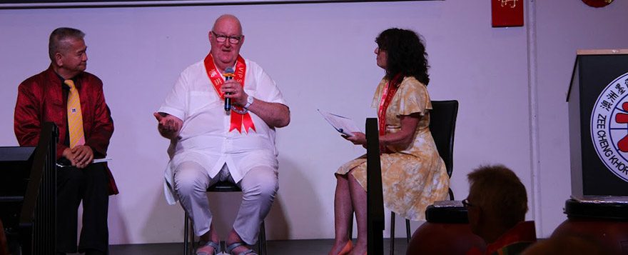 Master of Ceremonies, Stephen Chew – Zee Cheng Khor Moral Uplifting Society (left); Flowers of Faith Artist, Reverend Bhakta Dasa (middle);