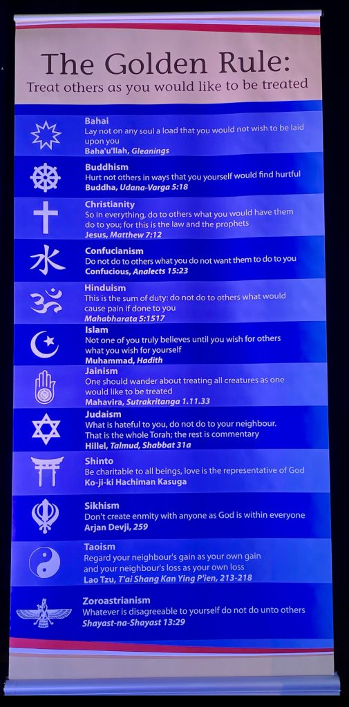 Click on each religion to learn more about its Golden Rule, which will appear at the top of the page: Baha’i, Buddhism, Christianity, Confucianism, Hinduism, Islam, Jainism, Judaism, Shinto, Sikhism, Taoism, and Zoroastrianism.